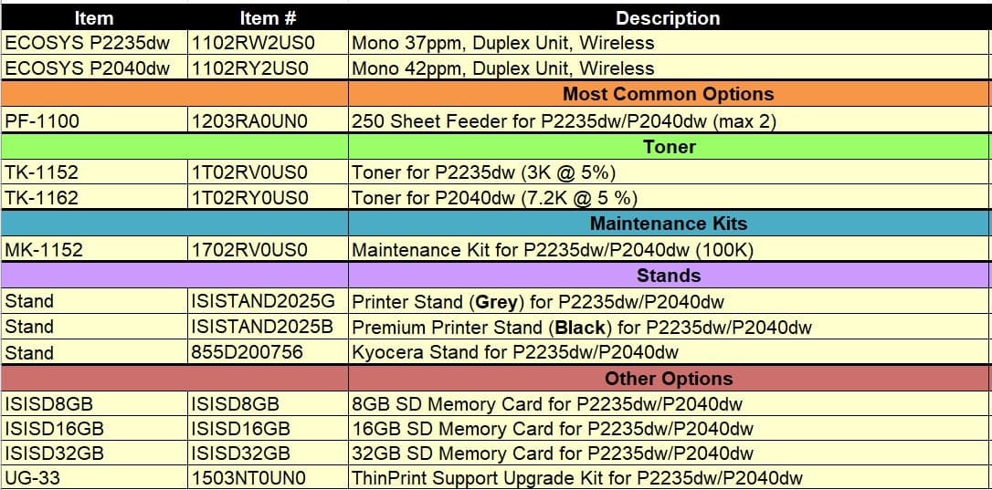 Kyocera ECOSYS P2040DW B/W Printer 1102RY2US0 Special Purchase