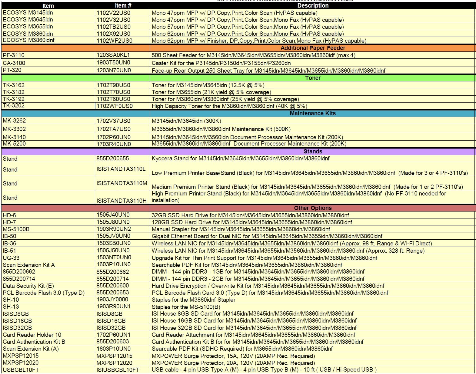 - Paper Handling Options: PF-3110 (500-sheet cassette x4)