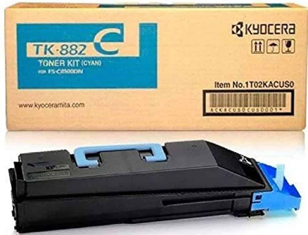 This genuine OEM Kyocera TK-882C Cyan Toner Cartridge 1T02KACUS0 includes FREE SHIPPING in the contiguous United States!